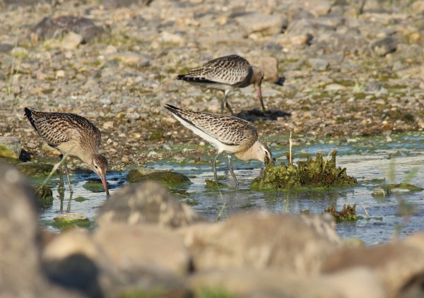 Břehouši rudí (Limosa lapponica) při pátrání po potravě.