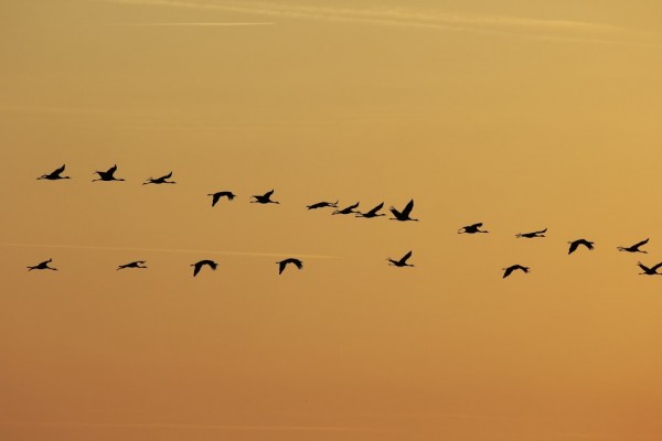 Večerní pochod na místo, kde bude krásně vidět západ slunce a jeřábi přeletující na nocoviště