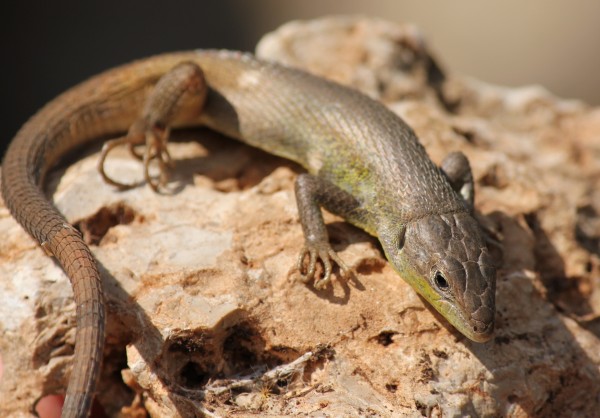 Ještěrka severoafrická (Teira perspicillata/Lacerta perspicillata). Kupodivu se tu vyskytovali dva typy zbarvení ještěrky severoafrické, jedny byly s pustíky a druhé s pruhy.
