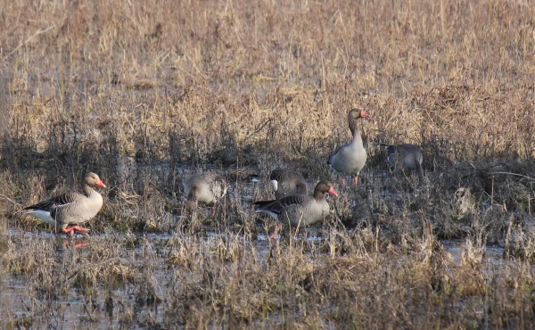 Velká množství divokých hus u v půlce března na jihu Moravy nehledejte. Zbytek hus na Lednickém (Mlýnském) rybníce v počtu cca. 1000 kusů, zrhuba polovinu tvořily husy polní a druhou polovinu husy běločelé.