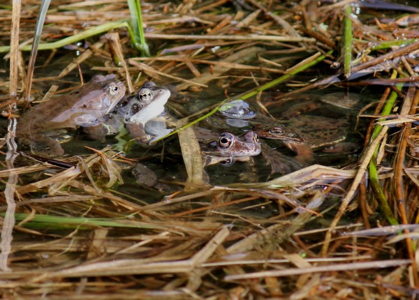 Stovky skokanů ostronosých (Rana arvalis) se oddávalo základnímu pudu a sice rozmnožování.