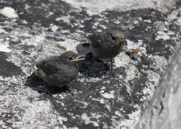 Na ochozu hradu krmili rehci mláďata, právě vylétaná z hnízda.