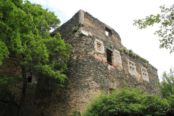Pohled na Hardegg z malé naučné stezky v rakouském parku Thayatal, stezka vedla od Domu národního parku u Merkesdorfu