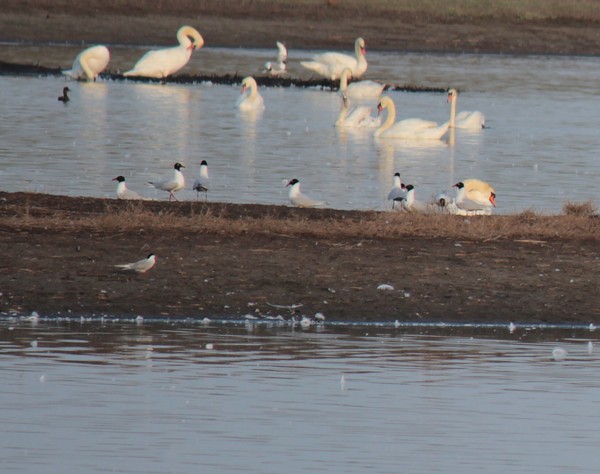 Největší ze soustavy 3 rybníků u Murighiolu, vzadu vpravo se tyčí pahorky Bestepe. Na tomto rybníku byla hnízdní kolonie racků a rybáků. Také tu byli velmi hojní tenkozobci opační a pisily čáponohé, kteří zde později pravděpodobně zahnízdili.