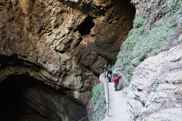 Nejhlubší jeskyně v severní Africe - La Grotte de Friouato, sestup po pětistech schodech na dno propasti, kde je vchod do jeskynního komplexu.