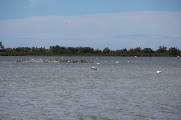 Abych se vrátila do roku 2013, na místo jsme dorazili velmi brzy, v podstatě za svítání a odjížděli jsme asi ve 3 odpoledne. Dříve jsme dorazili hlavně proto, že ve Španělsku postavili spoustu nových dálnic a cesta se tak urychlila o několik hodin. Ještě rozespalá jsem vylezla z autobusu a zase jsem do něj rychle zalétla. Byla nepředstavitelná zima, obloha byla ale jasná, chlad způsoboval velmi silný a studený vítr mistrál. Musela jsem na sebe navléct vše co jsem u sebe měla, včetně čepise a rukavic. Stejně to profukovalo. Naštěstí po vydatné snídani sluníčko vzduch ohřálo a mohla jsem sundat několik vrstev. Jégrovo spodní prádlo jsem si ale zatím ponechala a vyrazila jsem vstříc dobrodružství, všichni už se dávno rozprchli. Termoprádlo jsem sundala až kolem poledne, pak už sluníčko docela pražilo, ale když zašlo za mrak, bylo to znát. Cílem naší návštěvy byla přírodní rezervace Domaine de La Palissade en Camarque u města Arles. Byli zde 4 trasy na kterých se nacházeli i ptačí pozorovatelny, trasa číslo 1 (Le Clos d´Argent) měřila jen 800 m a prakticky nic zajímavého tam nebylo. Trasa č. 2 (La Baisse Claire) měřila 3 kilometry, na této kratší trase byla moc pěkná ptačí pozorovatelna s výhledem na lagunu plnou plameňáků a dalších ptáků, jako např. rybáků a tenkozobců hnízdících na ostrůvku. Trasa 2 navazovala na trasu č. 3 (La Sableuse) měřící 7 km, to už nějakou dobu trvalo, než ji člověk prošel a zvláště když se každou chvíli objevovali nějací ptáci (volavky, pisily, dravci). Na ní navazovala trasa 4 (La Palun), 8 km dlouhá.