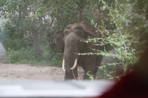 Samotářský samec slona indického, tzv. tuskar, slon s velkými kly. Chystal se zdemolovat náš jeep, ale mi vycouvali tak rychle, že z toho nic nebylo, ale těch pár vteřin hrůzy....