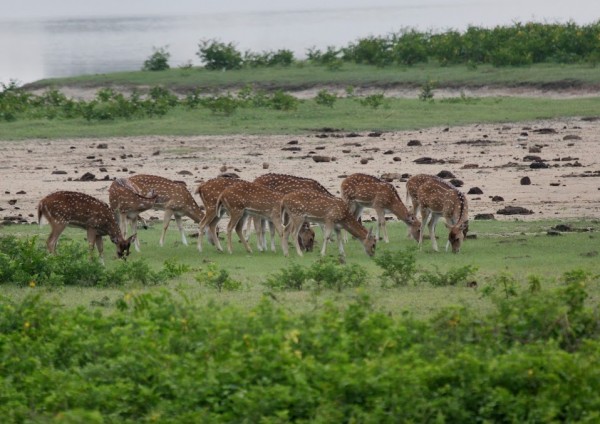 Pro mě bylo safari v Národním parku Yala West asi nejzajímavější z hlediska ptáků a potom samozřejmě ten zážitek se vzteklými slonem :-) Jedeme si takhle poklidně jeepem s naším průvodcem, dlouho jsme neviděli nic zajímavého a najednou v takovém zarostlém údolíčku stojí před námi sloní samec s obrovskými kly, tzv. tuskar (angl. tuscar). Řidič zastavil a byl docela vystrašený, asi už věděl, co je to za týpka. Slon nám zablokoval cestu dál. Chvíli jsme jen tak vyčkávali, potom to vypadalo, že si půjde slon svou cestou. Potom ale nastal obrat, slon nastartoval výhružná gesta a najednou se proti nám rozeběhl plnou rychlostí. Řidič na nic nečel a také hodil plnou rychlost, ale zpátečku a vycouval tak rychle, že sice slon za námi chvíli běžel, ale pak jsme mu naštěstí ujeli a on už nás nepronásledoval (viz. obrázky níže). respekt budily i dvě obrovské díry v kapotě našeho jeepu, do kterých by se vešla moje ruka. Způsobil je při nějakém dřívějším incidentu pravděpodobně ten samý slon. Po cestě jsme potkávali jeepy, které měly od sloních klů trochu propíchnutá skla apod. Na safari jsme vstávali velmi brzy, jeep nás naložil u ubytování asi v půl páté ráno (ještě za tmy), pak jsme uháněli po silnici směrem k parku asi přes půl hodiny, do parku jsme dorazili také ještě za tmy, ale brzy začalo svítat. Ten den ale bylo poměrně zataženo, což je vidět i na fotkách.