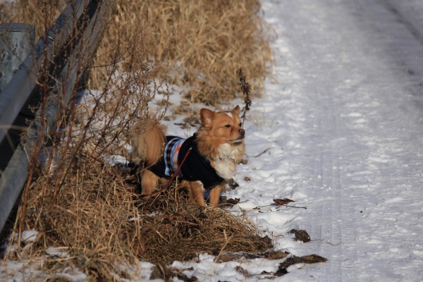 Max čivaví v modrém svetříku - náš věrný společník na birdwatcherských toulkách. Důrazně odháněl všechny lidi od našeho stativového dalekohledu, lepšího hlídače pohledáš.